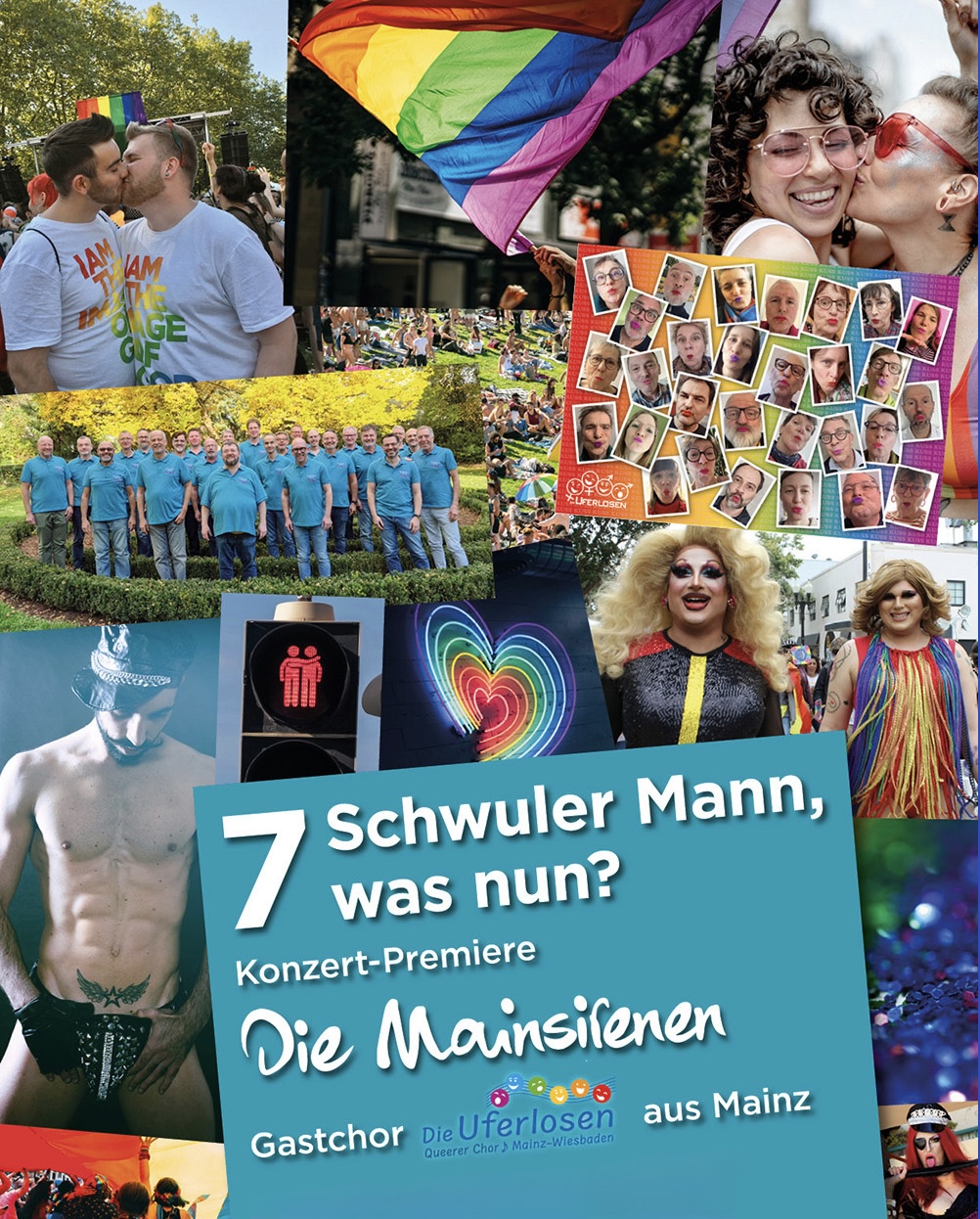 Wie sähe eine schwule Rede „zur Lage der Nation“ aus? Die Mainsirenen merken im vierten Jahrzehnt ihres Bestehens, dass manche Lieder von früher nicht mehr in unsere neue Zeit passen, andere aber aktueller sind denn je. Aggressionen gegen Schwule nehmen zu, kommen heute aber nicht nur (wie immer schon) von der rechten Seite und von religiösen Fanatikern, sondern auch aus dem Inneren unserer queerenBewegung, wo manche aus LGBTQ+ den Buchstaben G am liebsten ganz entfernen möchten.Das kann nicht so bleiben, etwas muss sich ändern, WIR müssen uns ändern.